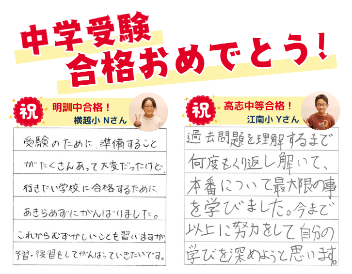 受験のために準備することがたくさんあって大変だったけど、行きたい学校に合格するためにあきらめずにがんばりました。